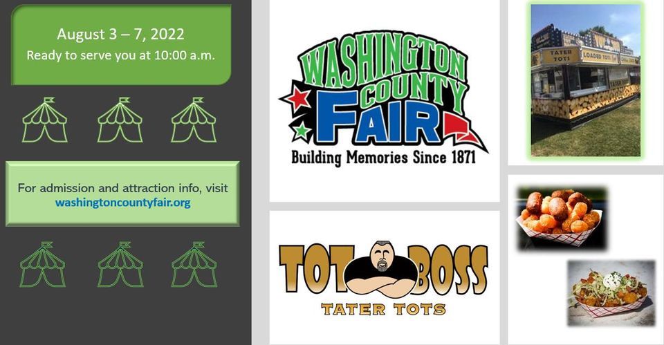 Rides, games, food, shows, vendors, exhibits, and so much more! Come on by for a tater tot concoction. To learn more about the fair, visit