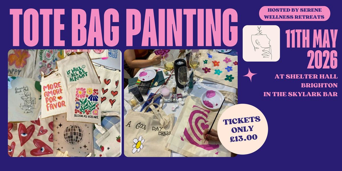 Looking for a fun, relaxed way to get creative? Join us for a Tote Bag Painting Workshop at Shelter Hall Brighton on Monday 11th May, 6–8pm.