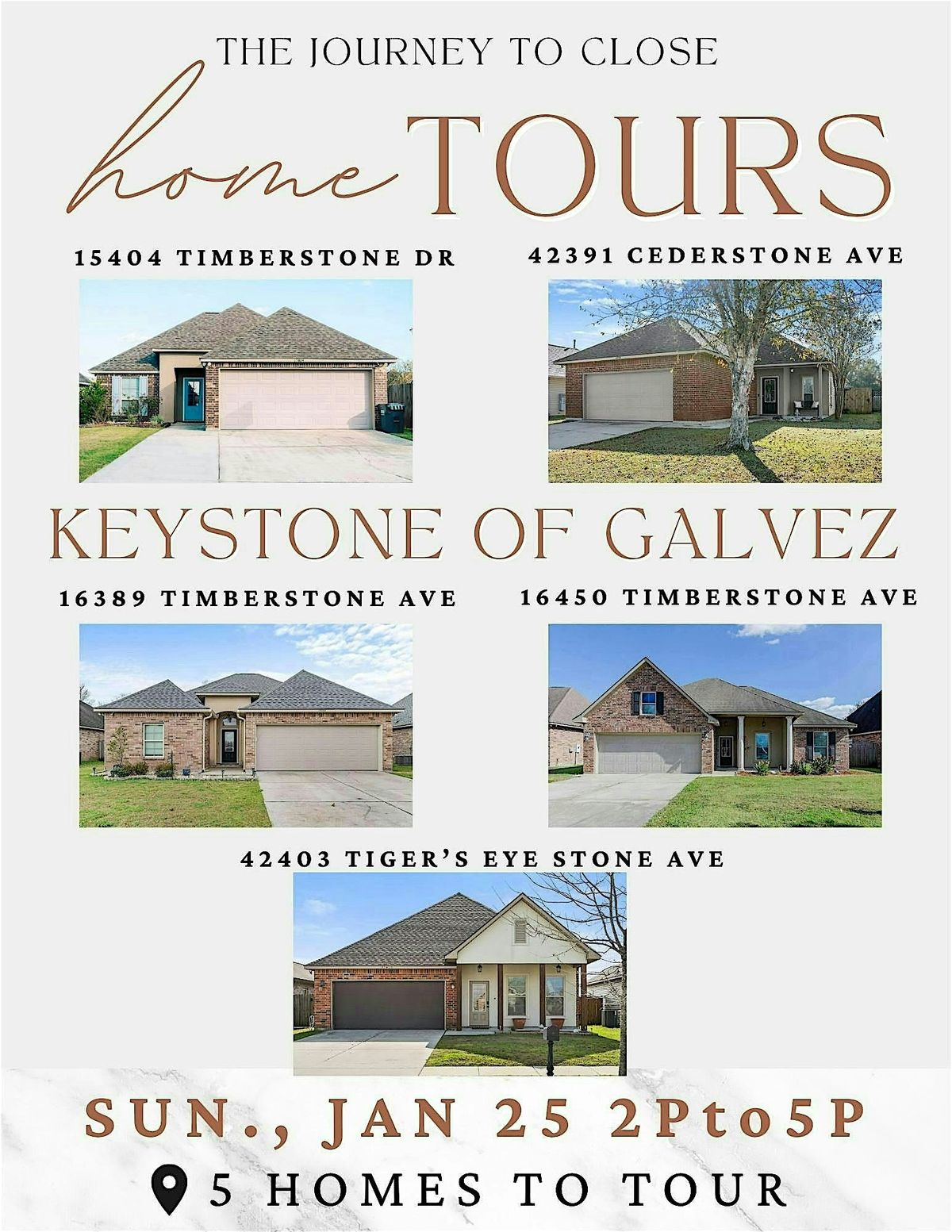 This self-guided tour features five (5) available homes within the desirable Keystone of Galvez community. Each stop offers a unique experience for both agents and buyers, making the journey from touring to closing even more rewarding.