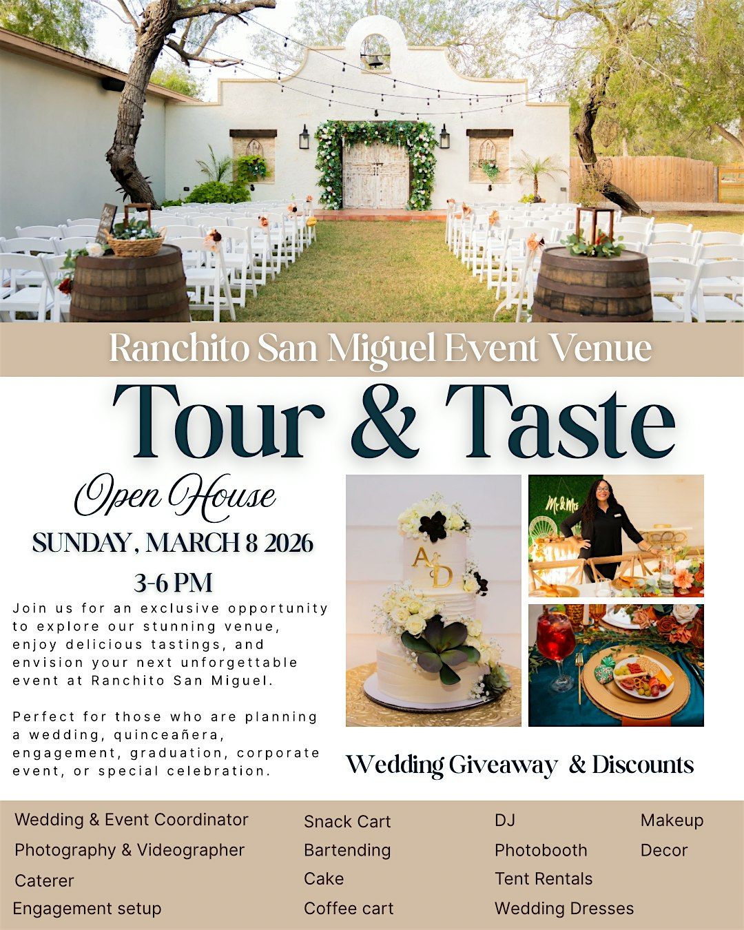 Join us for a fun-filled day of exploring our venue, tasting local flavors, meeting vendors at our Tour & Taste Open House event!