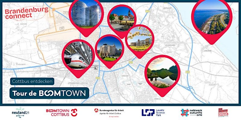 Im Rahmen unseres Projekts Brandenburg Connect nehmen wir dich mit auf eine inspirierende und überraschende Tour durch die BOOMTOWN Cottbus. Gemeinsam erkunden wir die Themen Leben, Wohnen und Arbeiten. Wir bringen euch in Kontakt mit Macher:innen hinter dem Boom: mit potenziellen Arbeitgeber:innen, kreativen Köpfen, ambitionierten Initiativen, zukunftsorientierten Projekten, engagierten Menschen und kommunalen Vertreter:innen.