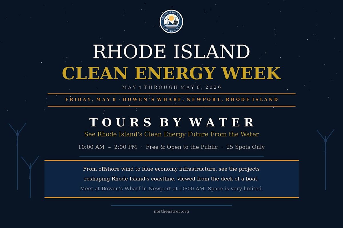 This event is part of Rhode Island Clean Energy Week, May 4 through May 8, 2026, presented by the Northeast Renewable Energy Coalition. For more information visitnortheastrec.org.