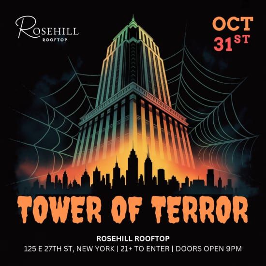 Date & Time: Friday, October 31, 2025 | Doors open at 9:00 PM ๐ Location: Rosehill Rooftop, New York ๐งฅ Dress Code: Costumes are strongly encouraged but not mandatory ๐ก๏ธ Rooftop Info: Mostly indoors; outdoor area equipped with heaters โฟ Accessibility: The venue is ADA-compliant Description This Halloween, rise into the unknown at the Tower of Terror Halloween Night Party at Rosehill Rooftop. High above NYC, eerie elegance collides with supernatural fun in a haunted high-rise packed with spooky surprises, signature cocktails, and epic rooftop views. Dance under the stars and prepare for a chillingly unforgettable night. Get your tickets for Tower Of Terror Halloween Night Party NYC in Rosehill Rooftop now!