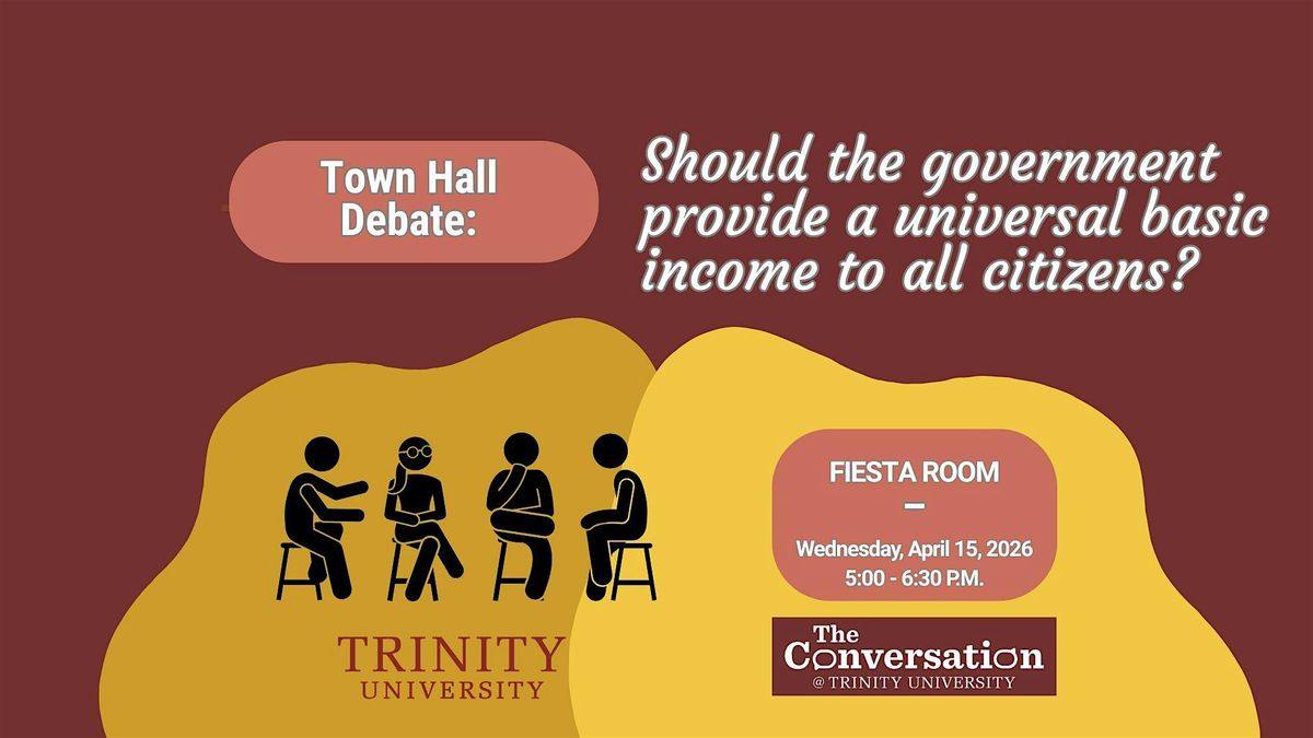 Join us on Wednesday, April 15, 5:00 - 6:30 p.m. in the Fiesta Room at Trinity University, for pizza and an interactive discussion where we ask, "Should the government provide a universal basic income to all citizens?"
