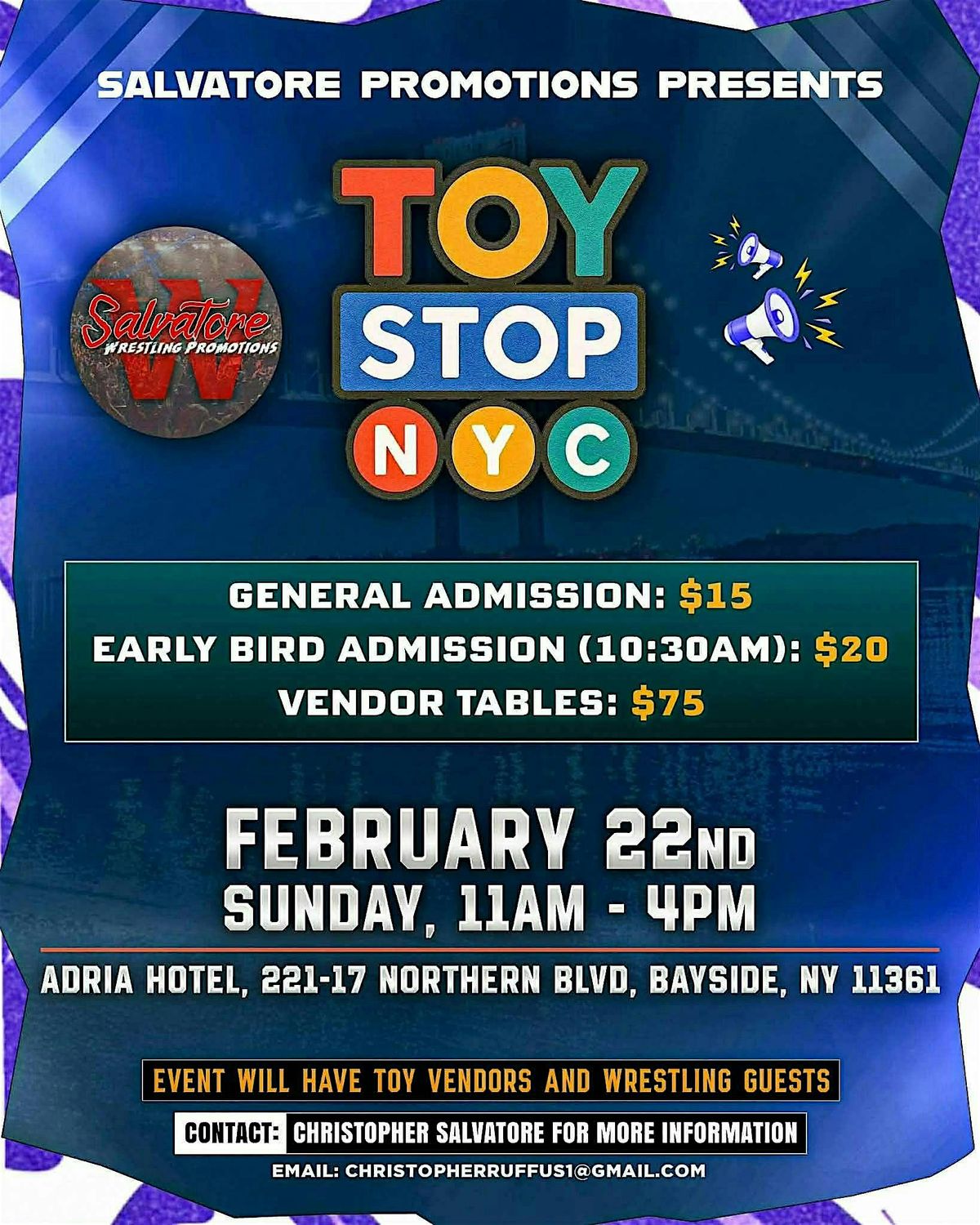 Sunday 2/22/26 Adria Hotel, Bayside NY 11am-4pm, 10:30am early bird tickets. Admission $15, Early Bird $20About this Event