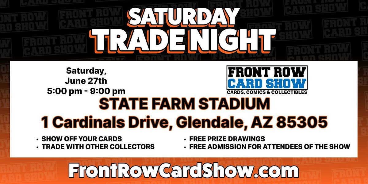Front Row Card Show takes place all weekend - June 27-28- at the State Farm Stadium in Glendale AZ. The main event features over 500 tables of cards, comics and collectibles. Trade Night is our evening social event on Saturday night only. It promises to be an unforgettable weekend!
