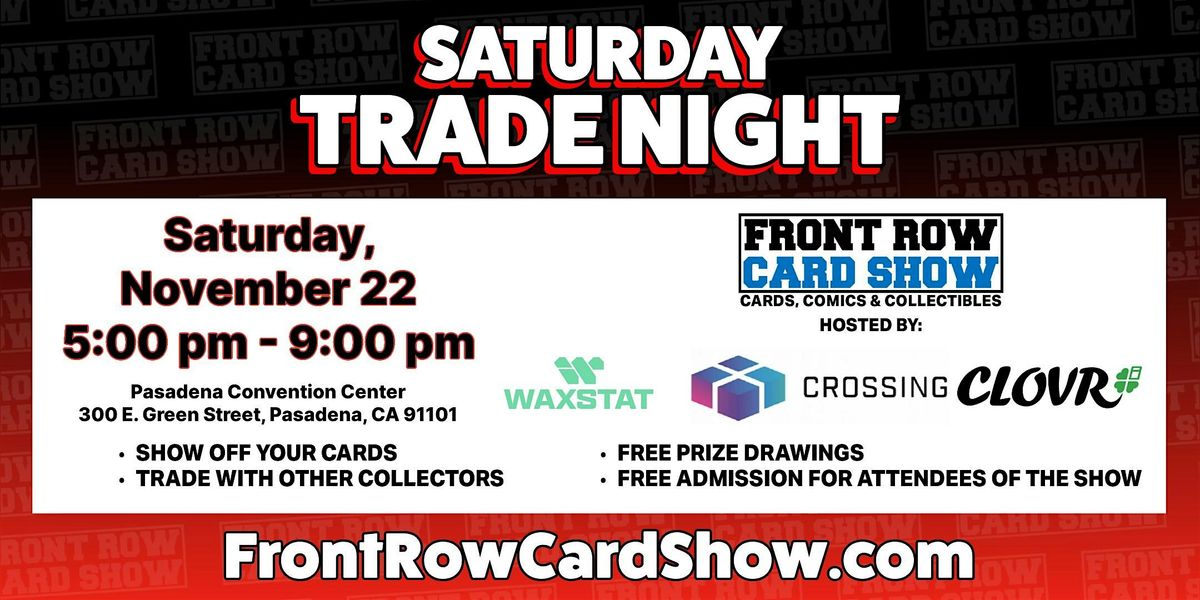Front Row Card Show takes place all weekend - November 22 - 23 - at the Pasadena Convention Center. The main event features 500 tables of cards, comics and collectibles. Trade Night is our evening social event on Saturday night only. It promises to be an unforgettable weekend!