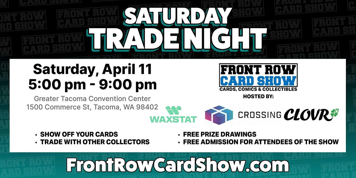 Come join us for a night of trading cards, meeting fellow collectors, and discovering rare finds at the Greater Tacoma Convention Center. Whether you're a seasoned collector or just starting out, this event is perfect for anyone passionate about trading cards. Connect with other enthusiasts, swap stories, and maybe even strike a deal or two. Don't miss out on this opportunity to expand your collection and have a great time doing it!