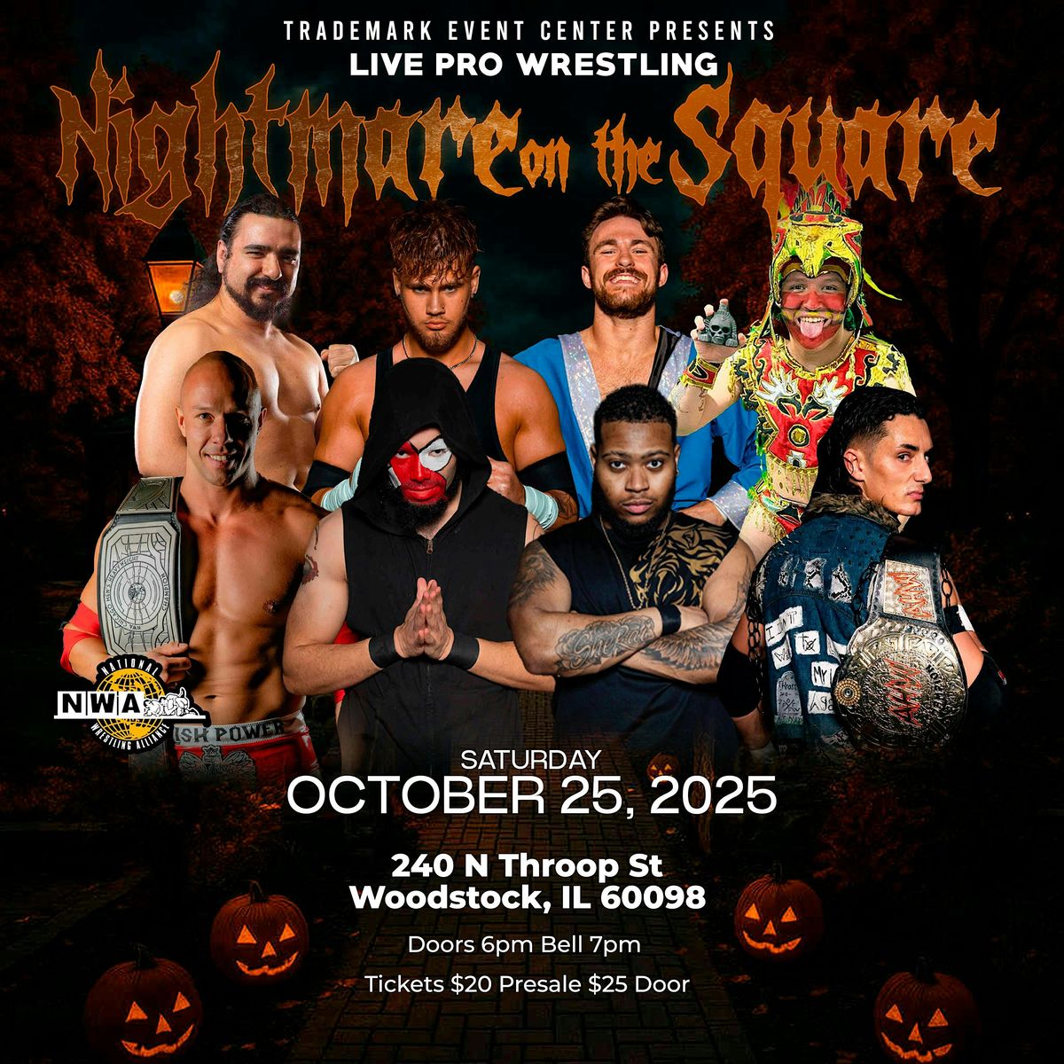 Get ready for a spooky night at Trademark Events for Live pro wrestling in Woodstock, IL, for our Annual Halloween Show! Join us on October 25, 2025 at 7:00 PM for a thrilling experience filled with scares and surprises. This year, we’re adding a spooky twist: bring an item of your choice, and it could be used in our MAIN EVENT! (All items will be checked in and taken to the locker room at the door, so please ensure they are appropriate for wrestling use. Please note: items may be broken and not returned.) What will your item of choice be? Don't miss out on this unforgettable event!