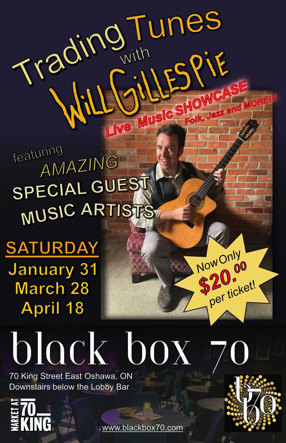 Durham Region's own award-winning Canadian Singer-Songwriter Will Gillespie hosts "Trading Tunes": a series of live Music showcases featuring the troubadour himself performing with some of his most talented friends and colleagues from the Folk and Jazz world. Trading tunes back and forth in-the-round, much like Folk Festival workshop stage.