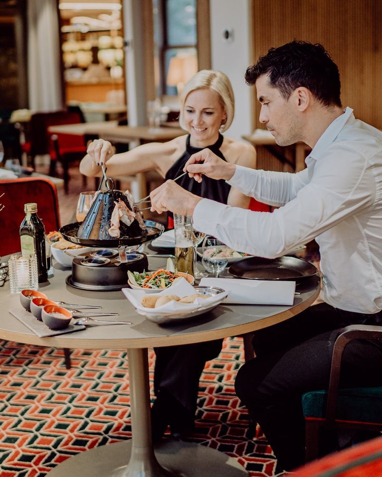 Jeden Samstag lädt das Restaurant Mirabell zu einem gemütlichen "Hut-Essen" ein. Der heiße Eisenhut, bzw. die Hutkrempe ist mit herzhafter Rindssuppe und Gemüse gefüllt, auf der sich jeder nach Belieben sein kulinarisches Schmankerl brutzeln lassen kann. Dazu servieren wir eine Auswahl an Fleisch und pikanten Gemüsevariationen, knackige Salate, resches Knoblauchbrot, hausgemachte Saucen und Gewürzsalze, sowie Kartoffelwedges.Zum Hut-Essen empfehlen wir Ihnen korrespondierende