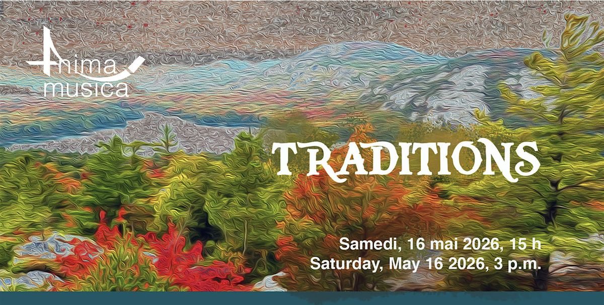 Joignez-vous à nous ! Sous la direction de Francis Guérard, le chœur Anima Musica présente Traditions — une célébration du patrimoine musical canadien, des chants autochtones aux aux ballades québécoises et les chansons irlandais. Accompagné d’instruments traditionnels, ce programme évoque la musique chantée entre amis et en famille, autour du feu, dans la cuisine et sur les bateaux en route vers le Canada.