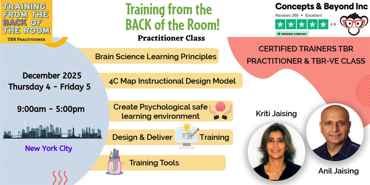 I am Kriti Jaising, the Founder and a Trainer at Concepts & Beyond Inc. I have over 25 years experience in advertising, digital marketing and consumer research. Mother of 2, I have been on the Board of Directors of ECPTA from last 5 years. Along with being actively involved in my children’s school life, planning & executing numerous educational and fun activities, I get to interact closely with the School system, Superintendent, teachers and students. This exposure opened my eyes to the dynamic changes in the learning landscape. This has drawn me to be a TBR Practitioner & Trainer. As a Trainer and Founder of Concepts & Beyond, I want to extend the outreach of TBR, implementing the values of Training from the Back of the Room into sales, consumer research, and education therefore improving presentations and the quality of learning as whole. After working in several different fields over the years I have witnessed the room for these fields to grow and heed the values of TBR. I can be reached at https://www.linkedin.com/in/kritijaising/ and Twitter@jaisingkriti
