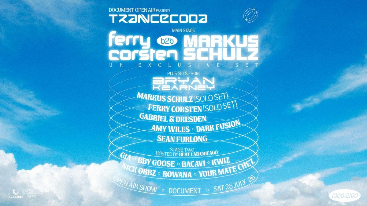 DOCUMENT OPEN AIR PRESENTS: TRANCECODA w/ FERRY CORSTEN b2b MARKUS SCHULZ (UK EXCLUSIVE SET)We're teaming up with Trancecoda, bringing two of the biggest names in Trance to Bristol for a U.K. exclusive B2B in our new Document Open Air setup!