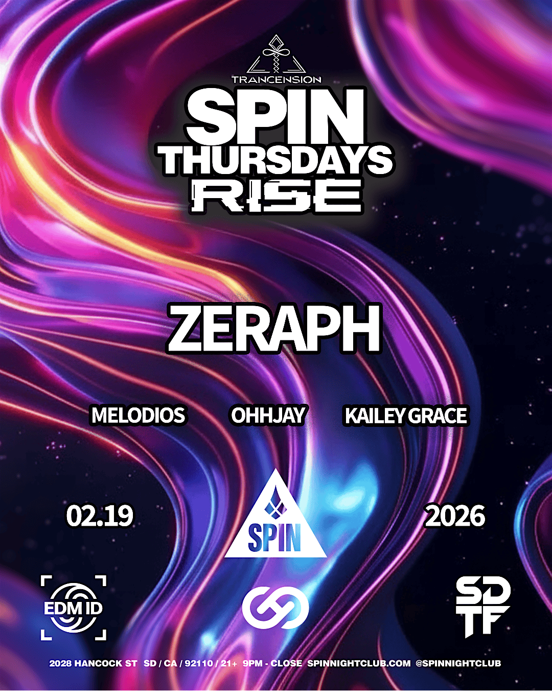 February's edition making his Trancension debut ZERAPH, also featuring OHHJAY and resident Djs Kailey grace and Melodios! Full force, start to finish. High energy trance all night long.