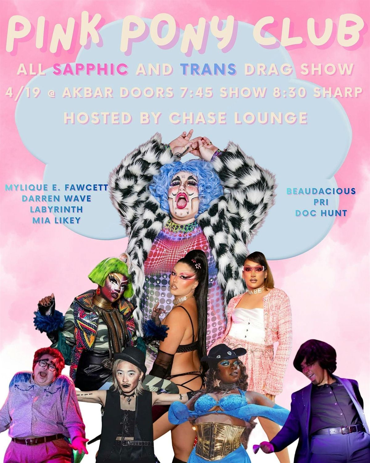 Join us for Pink Pony Club, an all sapphic and trans drag revue hosted by Chase Lounge! Featuring drag, burlesque, kink, vendors, and a dance party!