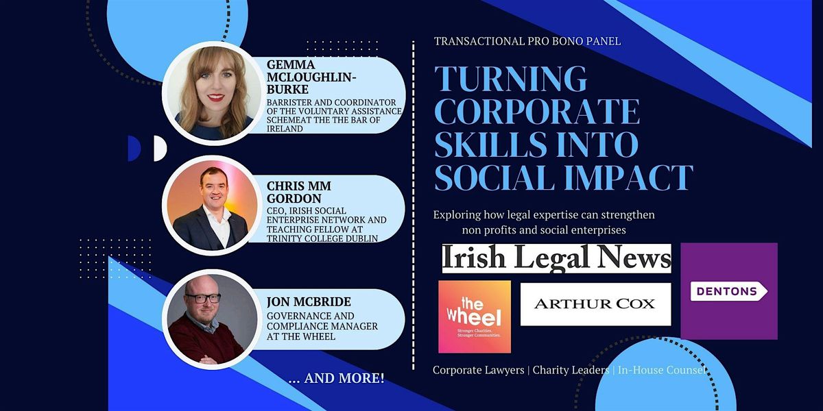 We look forward to contributions from , CEO, Irish Social Enterprise Network and Teaching Fellow at Trinity College Dublin, , Barrister and Coordinator of the Voluntary Assistance Scheme at the The Bar of Ireland, , Governance and Compliance Manager at The Wheel, contributions from Arthur Cox LLP and more!