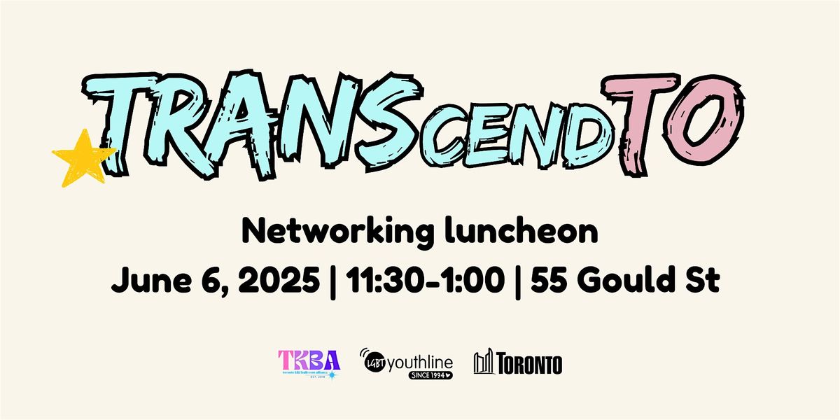 This luncheon coincides with the TRANScendTO symposium for Two-Spirit, trans and non-binary youth. You're encouraged to stick around after lunch to visit the service provider fair, peer workshops and the kiki ball!