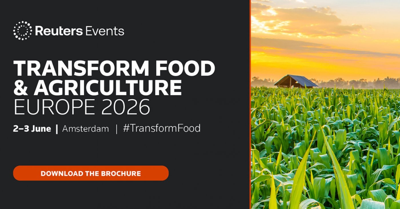 Reuters Events: Transform Food and Agriculture Europe 2026 (2-3 June, Amsterdam) unites 180 key leaders from across the agri-food industry to gain actionable insights, forge impactful partnerships, and deliver transformation at scale. In Amsterdam, pave the way for a more resilient food future.