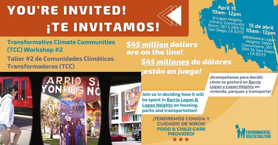 ¡Acompáñenos para decidir cómo se gastarán $45 millones en Barrio Logan y Logan Heights en viviendas, parques y transporte! Se proporcionará comida y cuidado de niños. Si tiene alguna pregunta, comuníquese con Armando a [email protected]. Por favor llene esta encuesta https://bit.ly/Hist-Barrios-Survey