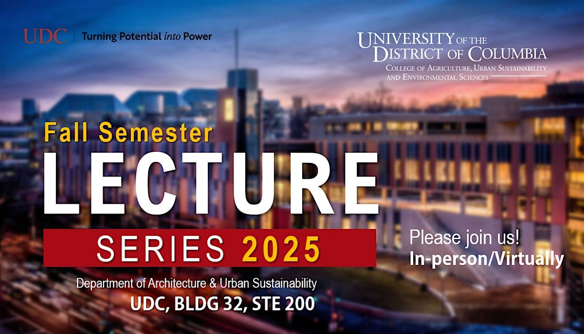 Welcome to UDC's Dept of Arch Lecture Series: Transforming the Built Environment: Designing for People and Planet! Join us for an exciting hybrid (in-person and virtual) event located at 4200 Connecticut Ave NW building 32 suite 200. Our series features thought-provoking discussions on how architecture plays a crucial role in shaping our surroundings. Don't miss out on this opportunity to learn from industry experts and engage in stimulating conversations. See you there!