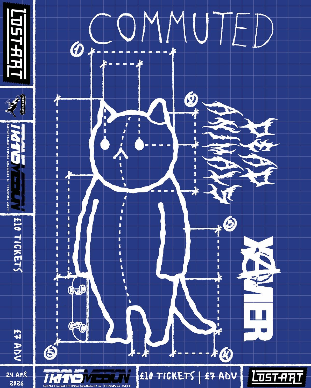 Transmission are proud to announce a night of in yer face DIY emo and punk, hosted by Lost art. Featuring COMMUTED, Dead Animals and Xavuer, this will be a night where trans individuals and allies alike are invited to release their ids, exorcise demons and come together in collective catharsis. Meaning there will be a lot of crowd interaction and screaming.