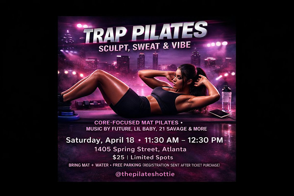 Trap Pilates is a core-focused mat Pilates experience designed to snatch your waist, tighten your midsection, and build real strength—while moving to a curated trap playlist.