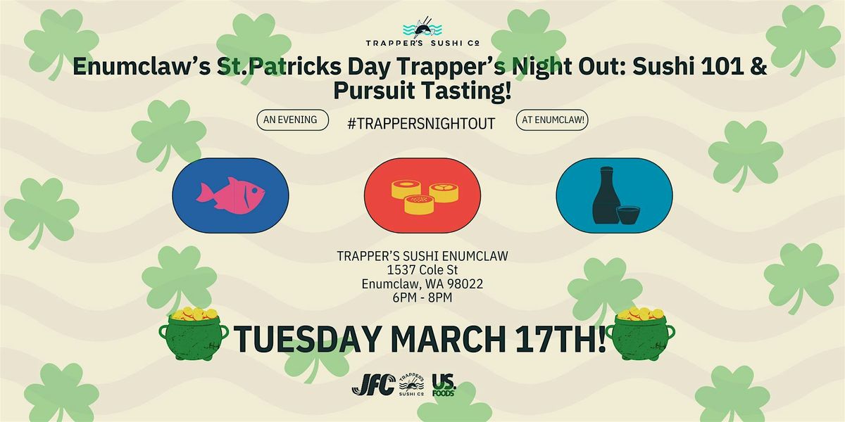 Trapper's Enumclaw's St.Patricks TNO: Sushi 101 & Pursuit Tasting event!