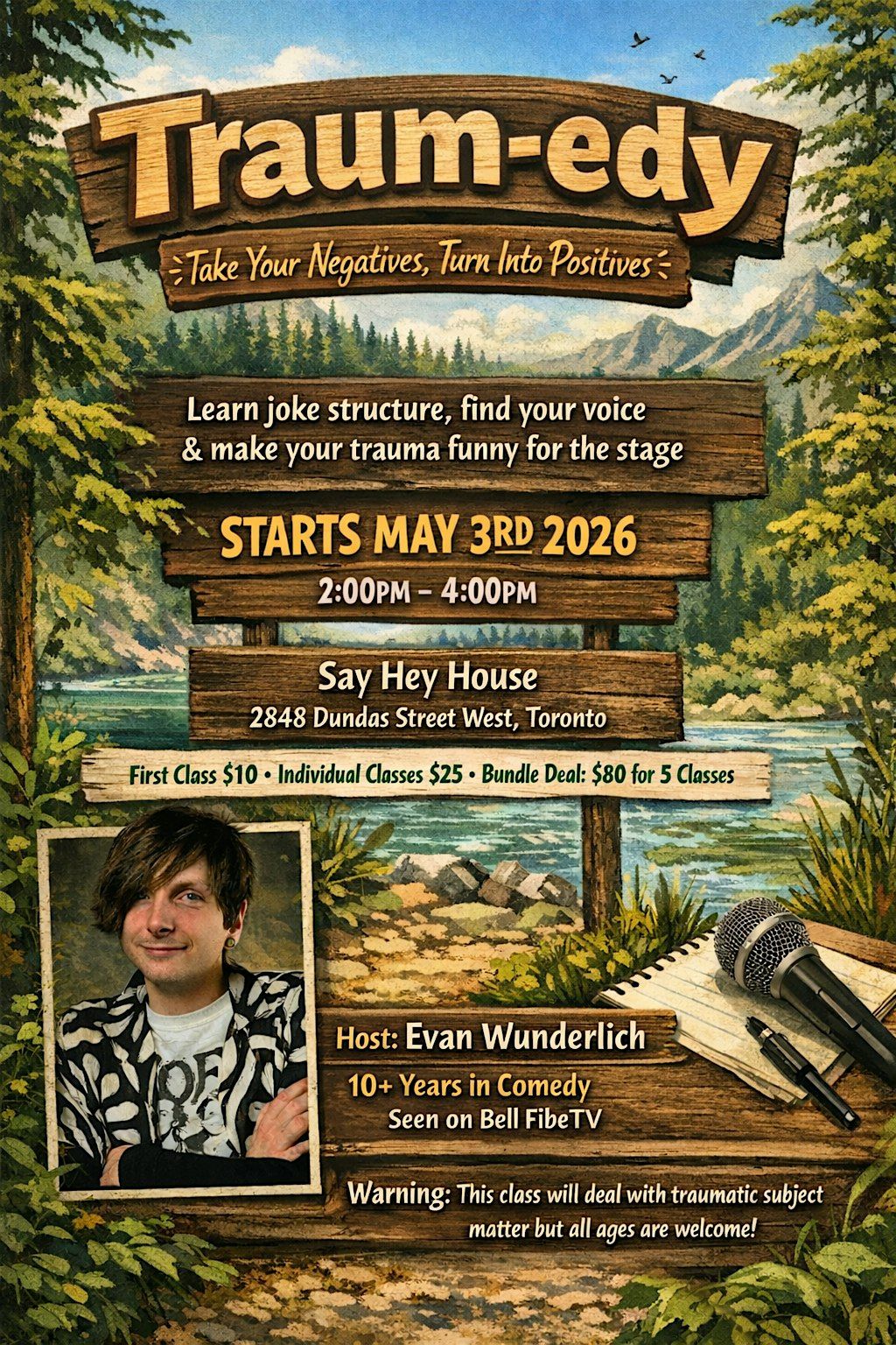 Traum-edy: A Joke Writing Workshop is a hands-on, supportive safe space where you’ll learn how to transform real-life experiences into comedy that can heal you and maybe the audience. Whether you’re brand new to stand-up comedy or looking to sharpen your material, this workshop will guide you through the essentials of joke structure, finding your unique voice, performance skills and turning personal stories into something powerful, and funny!