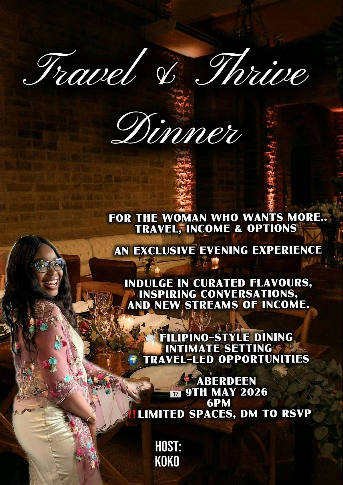 Join us for the Travel & Thrive Dinner with She Travels Scotland, designed for women who love travel and are ready to explore more: more flexibility, more income streams, and more intention with how they live and travel.