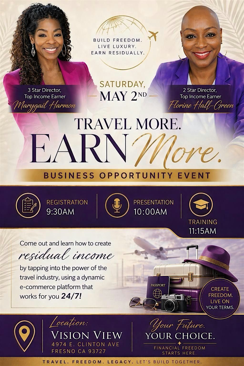 Come out and learn how to create residual income by tapping into the power of the travel industry, a e-commerce platform that works 24/7.