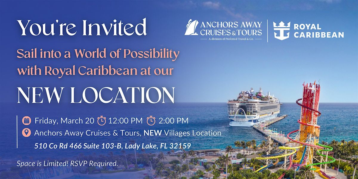 Join your Anchors Away team & Royal Caribbean representative Hong Ngo in the NEW Villages office for this informative presentation. Enjoy light refreshments and engaging conversation as you uncover a collection of vibrant sailings designed for every style of traveler.