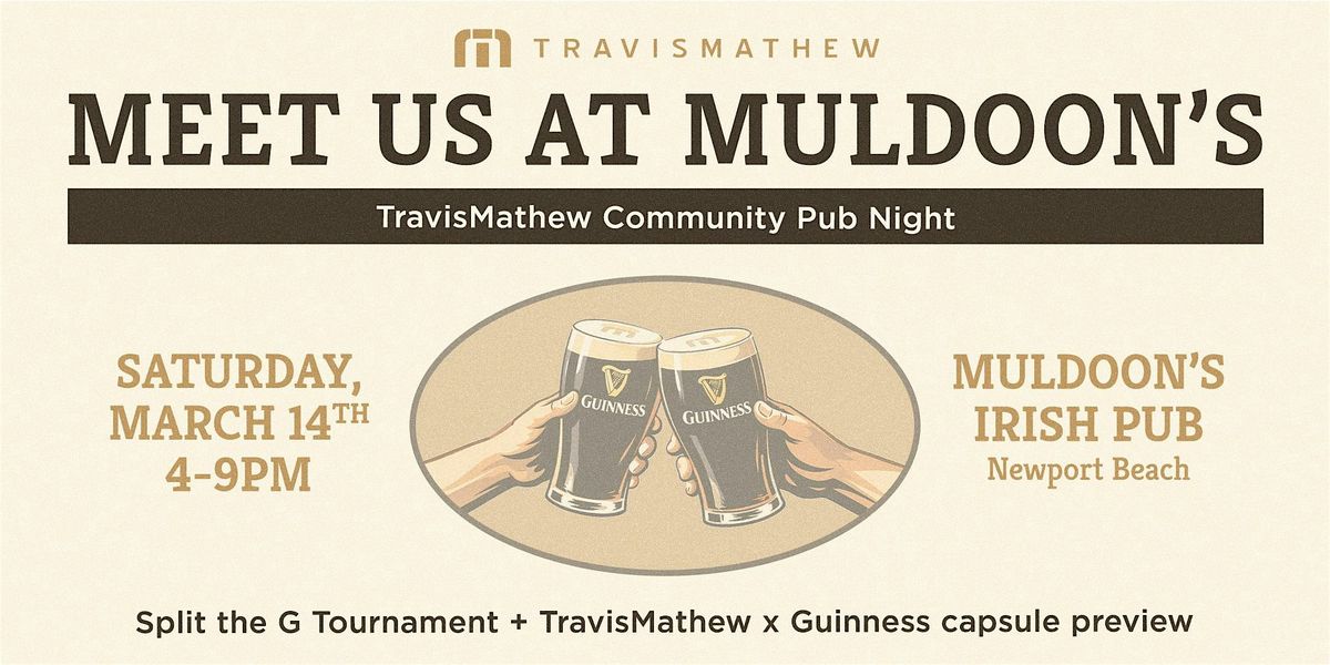 Join us at Muldoonβs Irish Pub to celebrate the launch of our new TravisMathew x Guinness capsule.