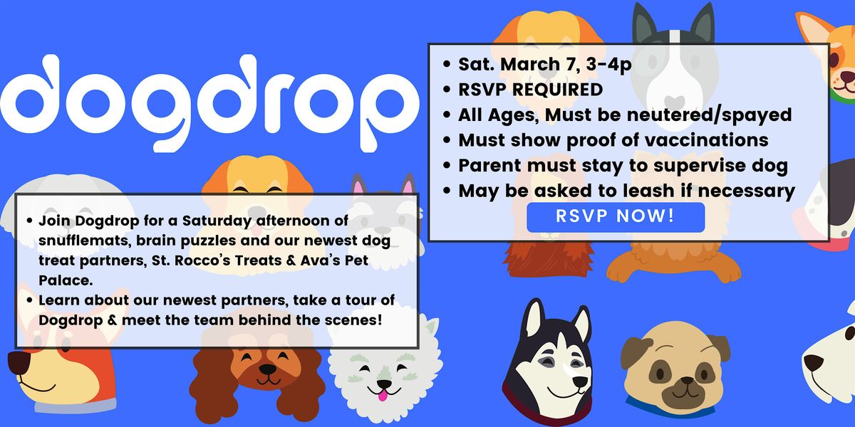 Swing by & let your dog flex their brain power while they solve snuffle mats & treat puzzles during a FREE hour of activities . Attendees will also be able take a guided tour of Dogdrop - Hollywood, meet fellow dog parents, and learn more about our programs—including the opportunity to sign up for a FREE Good Fit Test.