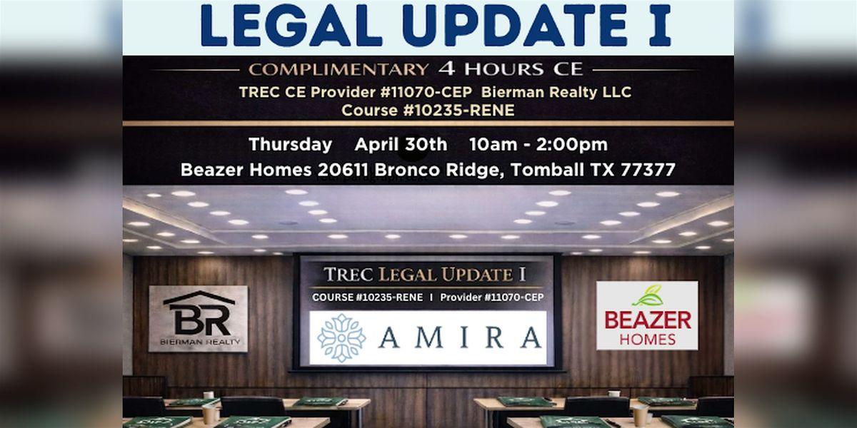 TREC CE Legal Update I at Beazer Homes in Amira - Tomball TX