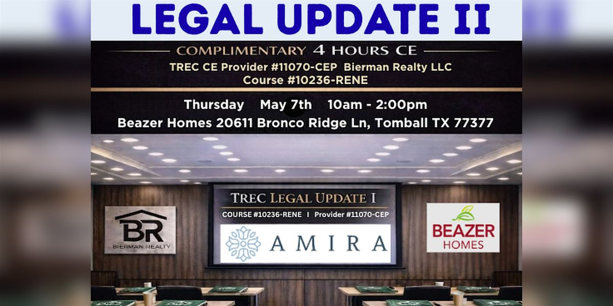 TREC CE Legal Update II at Beazer Homes in Amira - Tomball TX