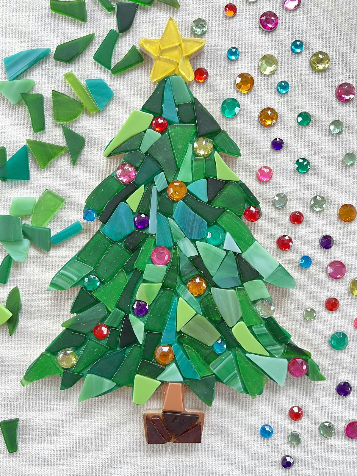 Tis the season to make a Christmas tree mosaic! Learn to make a beautiful 10" tall Christmas tree mosaic in this workshop hosted by Amanda from Mosaic Montage. This is a beginner level workshop, no prior experience is needed!
