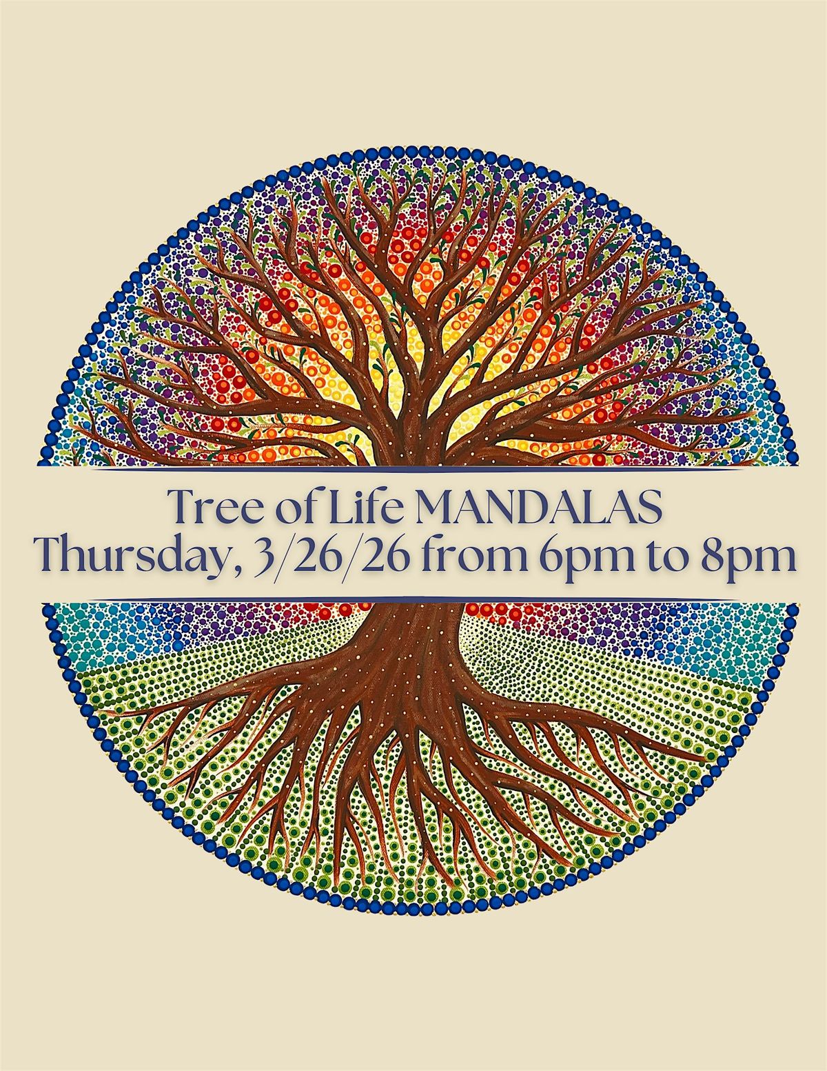 Join us for a Tree of Life Mandala Dot Painting & Wellness Class, where creativity and mindfulness intertwine. In this guided session, you’ll paint a beautiful mandala-inspired Tree of Life, a powerful symbol of growth, strength, connection, and renewal.