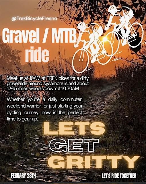 Let's get Gritty join us at Trek bicycle shop 10am for a dirty gravel ride around sycamore island. 12-15 miles. Wheels down at 10:30am.About this Event