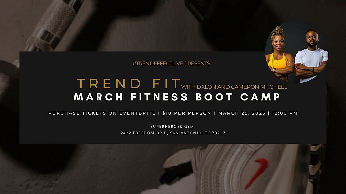 TREND FIT is held indoors at Superheroes Gym in San Antonio, TX. YOU are invited to join our FITNESS BOOTCAMP to kick off your fitness journey with a workout led by expert trainers, Dalon and Cameron Mitchell.