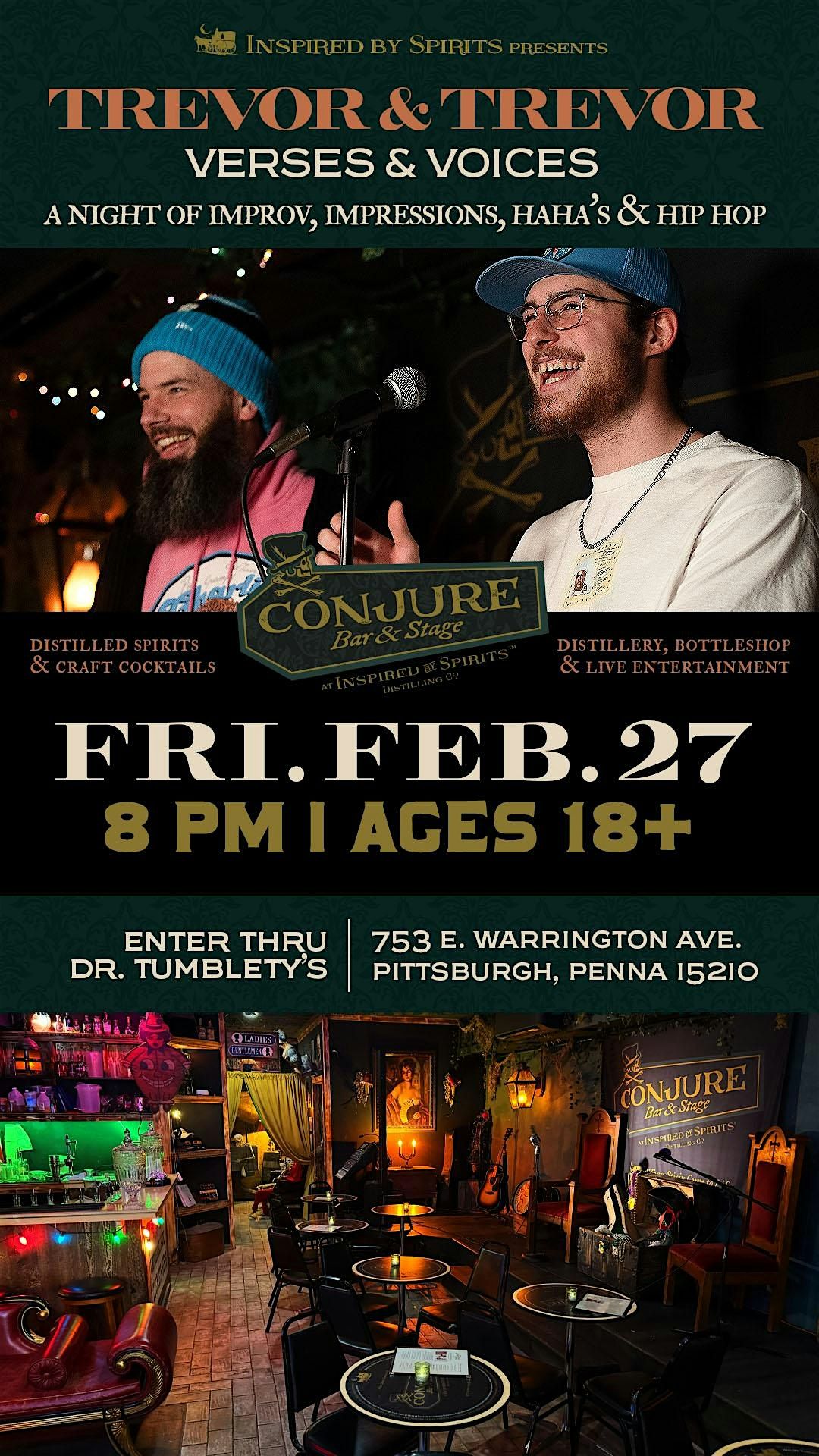The Conjure Bar & Stage (at Inspired by Spirits Distillery), 753 East Warrington Avenue, Pittsburgh, United StatesEvent Location & Nearby Stays: