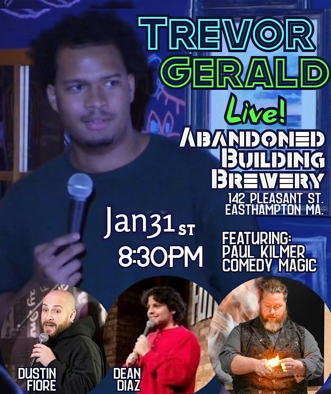 Comic Power House Trevor Gerald brings a night of nonstop laughs to the Baystate. Featuring Paul Kilmer, Dean Diaz & Dustin Fiore.