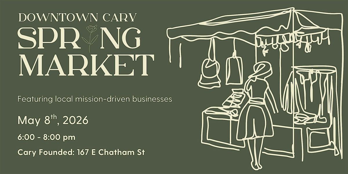Join Founded Communities, Cary Finds, and B-Local Triangle for an evening of community connection, small bites, and supporting local mission-driven businesses in our Spring Market!