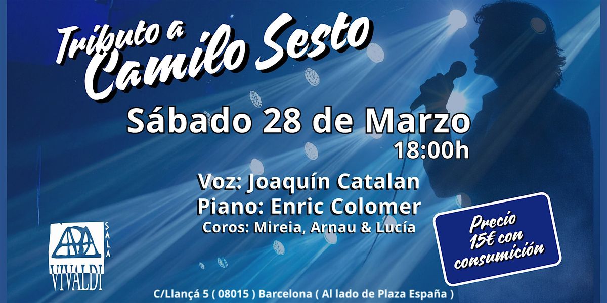 Vive en persona un TARDEO con las mejores canciones de uno de los grandes del pop español. Tributo de Camilo Sesto es la oportunidad perfecta para recordar sus éxitos y disfrutar con música en Vivo de una experiencia única junto a otros fans.