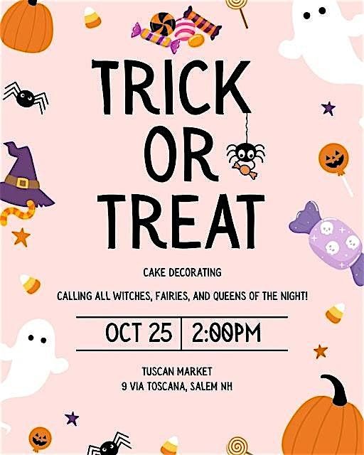 Get ready to unleash your inner pastry artist at our Trick or Treat Cake Decoration event - bring your creativity and sweet tooth!About this Event