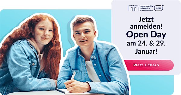 Erfahre beim Open Day alles über das Studium Plus und unsere Studiengänge an der Macromedia University of Applied Sciences.