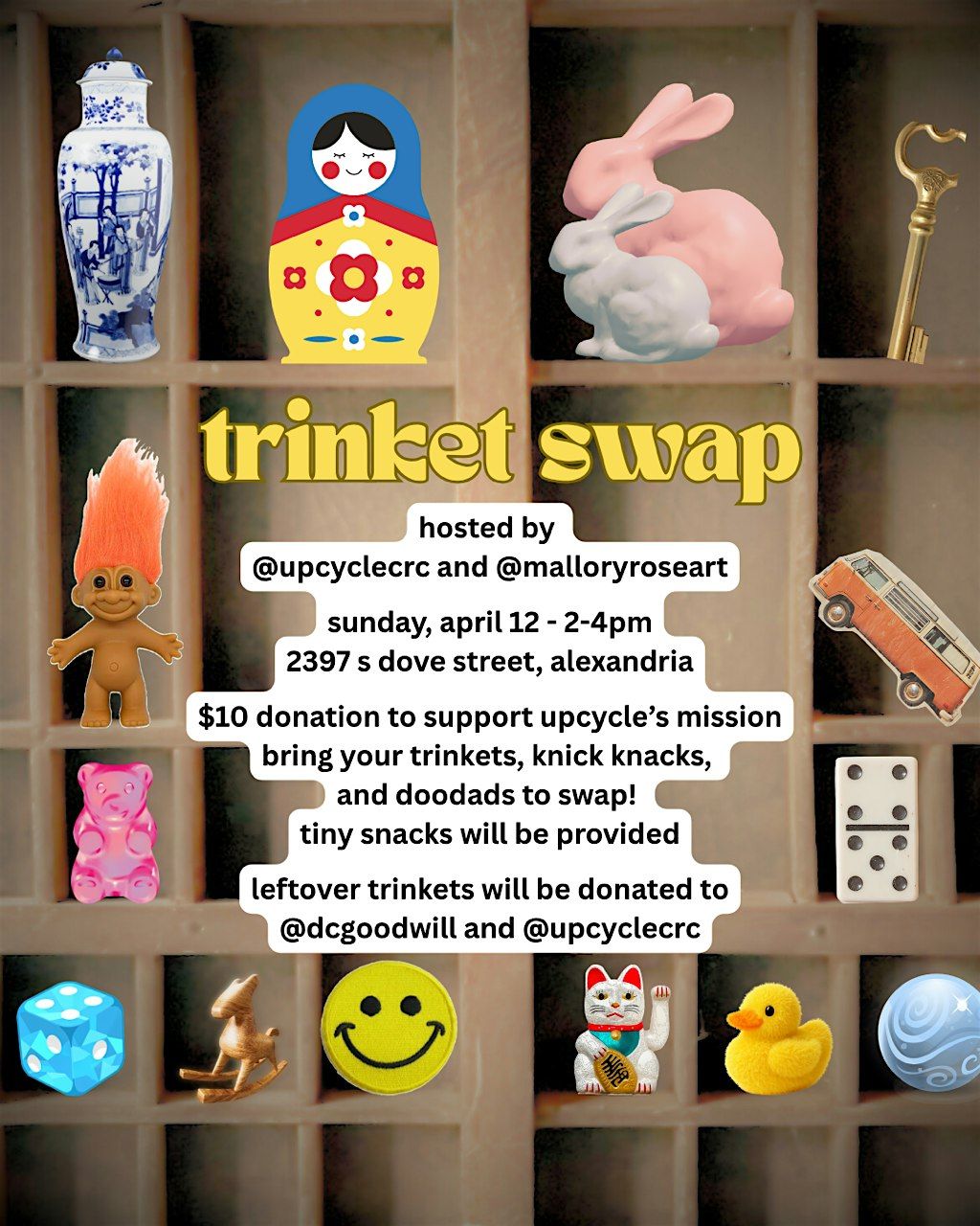 Join us for a Trinket Swap where you can trade cool little treasures with fellow trinket lovers in our community! It’s happening at 2397 S Dove St on April 12, 2026 at 2:00 PM (Eastern Time). Bring your favorite small items and get ready to discover something awesome. Whether you’re a collector or just love swapping, this is the perfect casual hangout that also gives back to UpCycle's nonprofit mission inspring creative reuse.