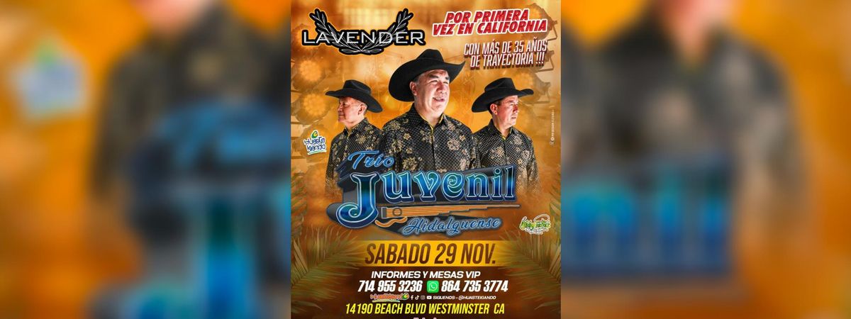 Don't miss 'TRIO JUVENIL HIDALGUENSE EN WESTMINSTER', the premier exciting event happening at Oc Entertainment, Westminster, CA, United States. This event showcases the best talent and expertise in the field. Immerse yourself in a world of opportunities and cutting-edge ideas. Reserve your place now for an unparalleled exciting experience. #TRIOJUVENILHIDALGUENSEENWESTMINSTER #event #exciting #WestminsterEvents #CAEvents