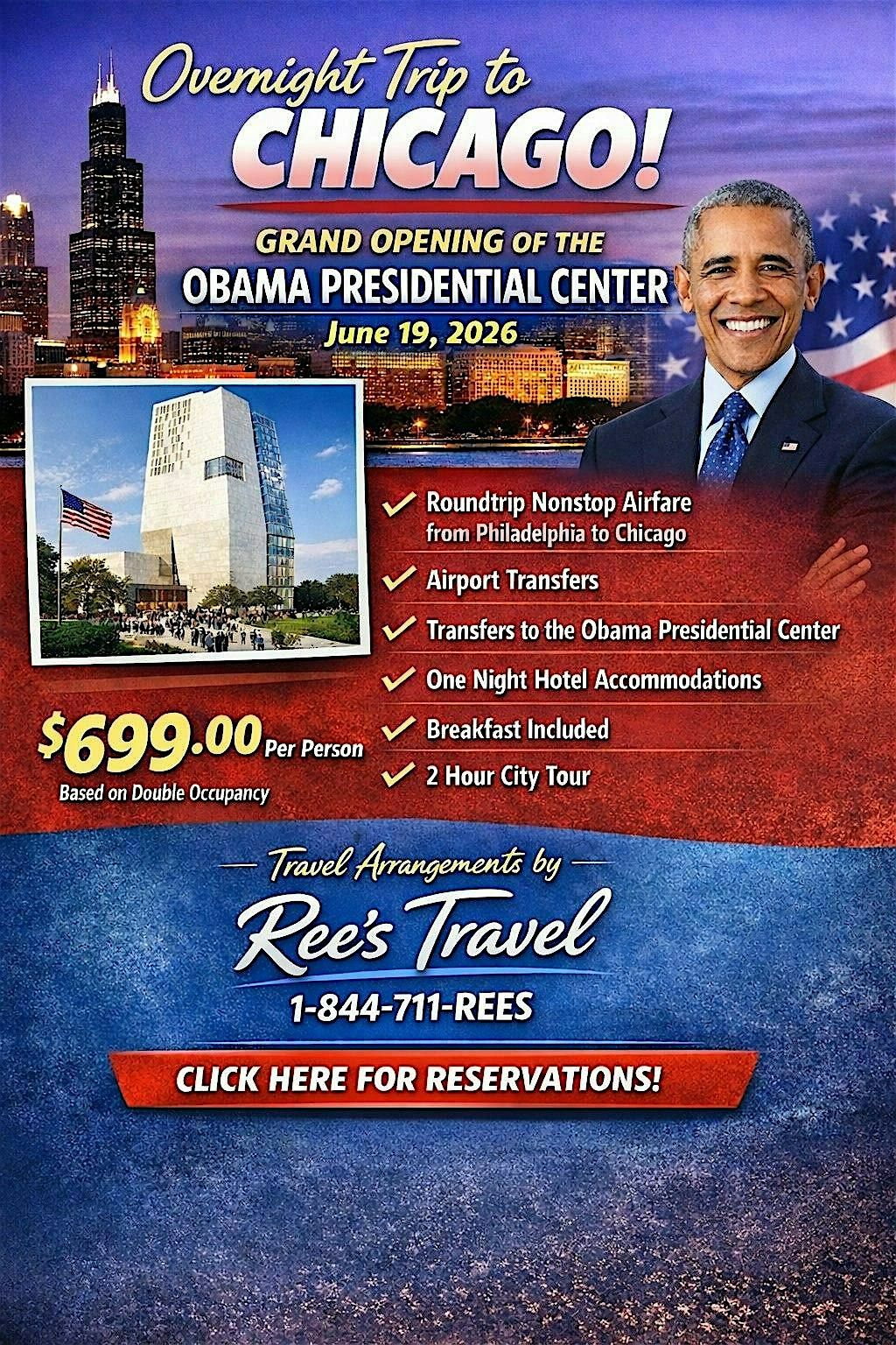 Join us for an exciting in-person adventure as we explore the brand new Obama Presidential Center! Get ready to dive into history, art, and culture all in one amazing place. Don't miss out on this unique chance to experience the grand opening up close with fellow enthusiasts. See you there!