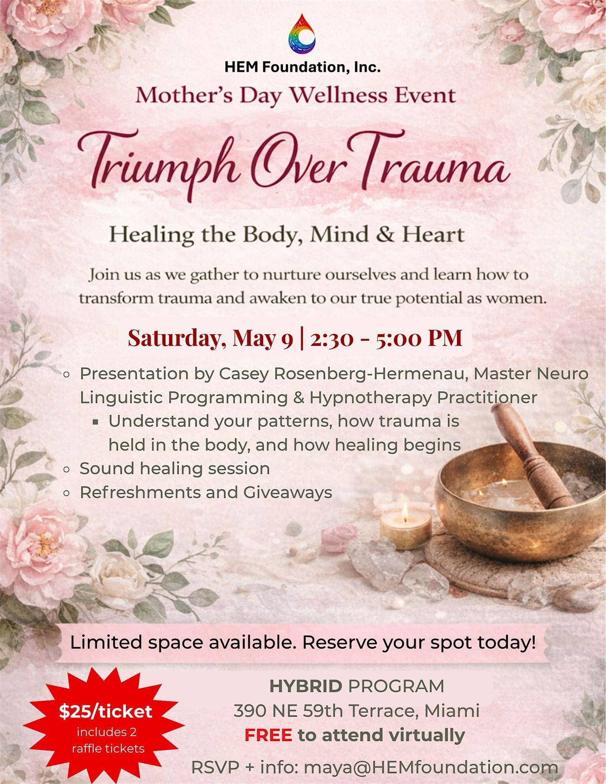 By the end of the program, participants will leave with greater self-awareness, practical tools for nervous system regulation, and a deeper understanding of the connection between mind, body, and health that they can apply in their daily lives and, for providers, in clinical practice.
